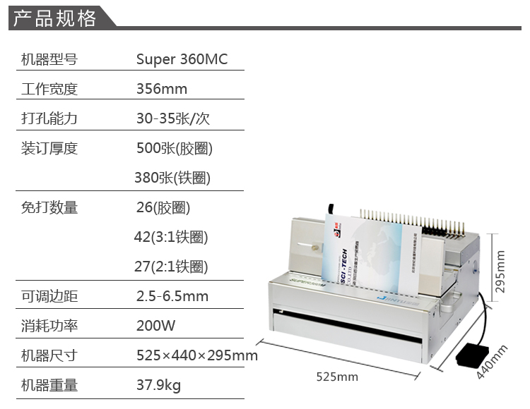 * 表示必填采购:金图Super 360MC组合式打孔装订机